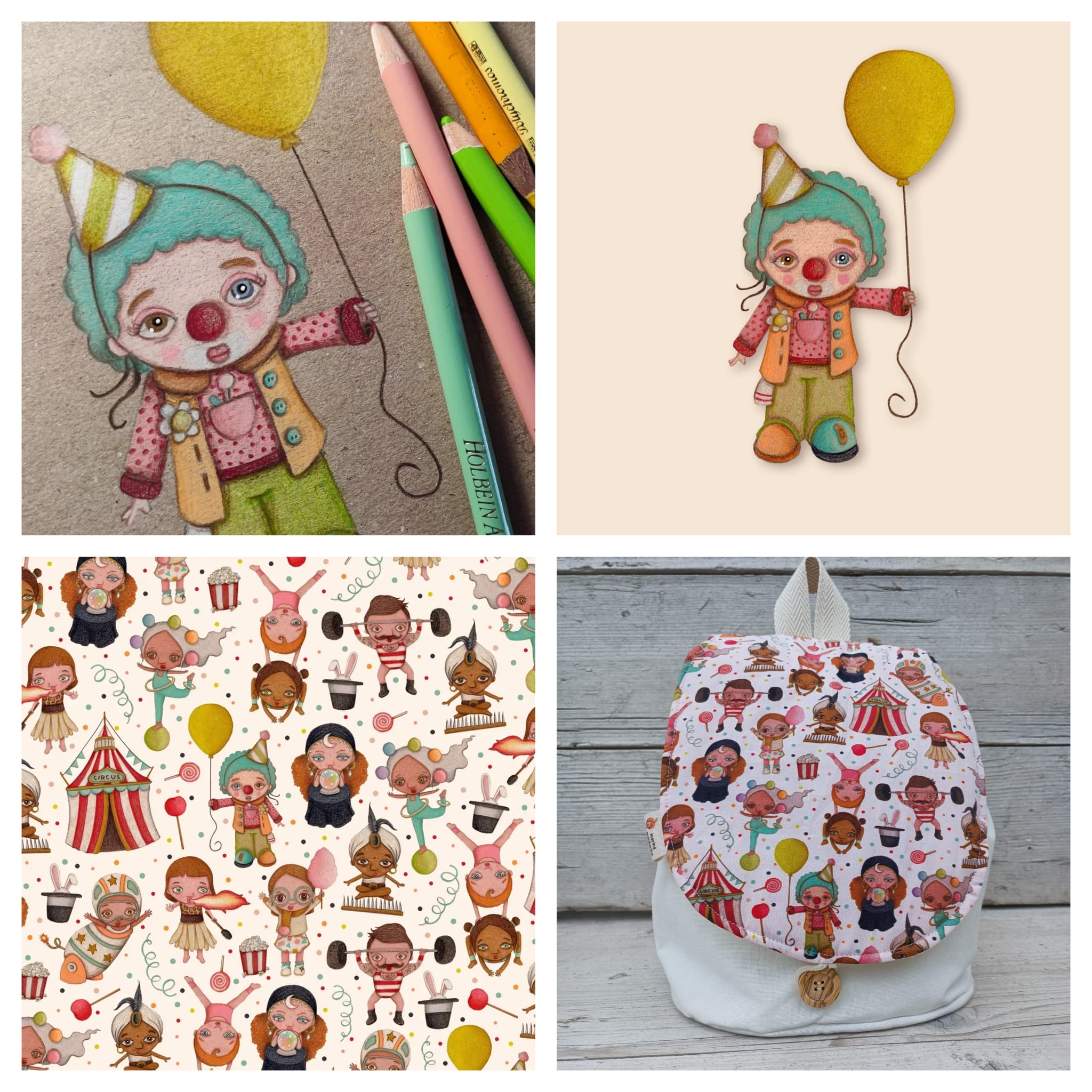 Cada uno de nuestros estampados es único y exclusivo de nuestra marca, diseñado a mano por Marina Mandarina con lápices de colores y digitalizado posteriormente para crear el rapport.