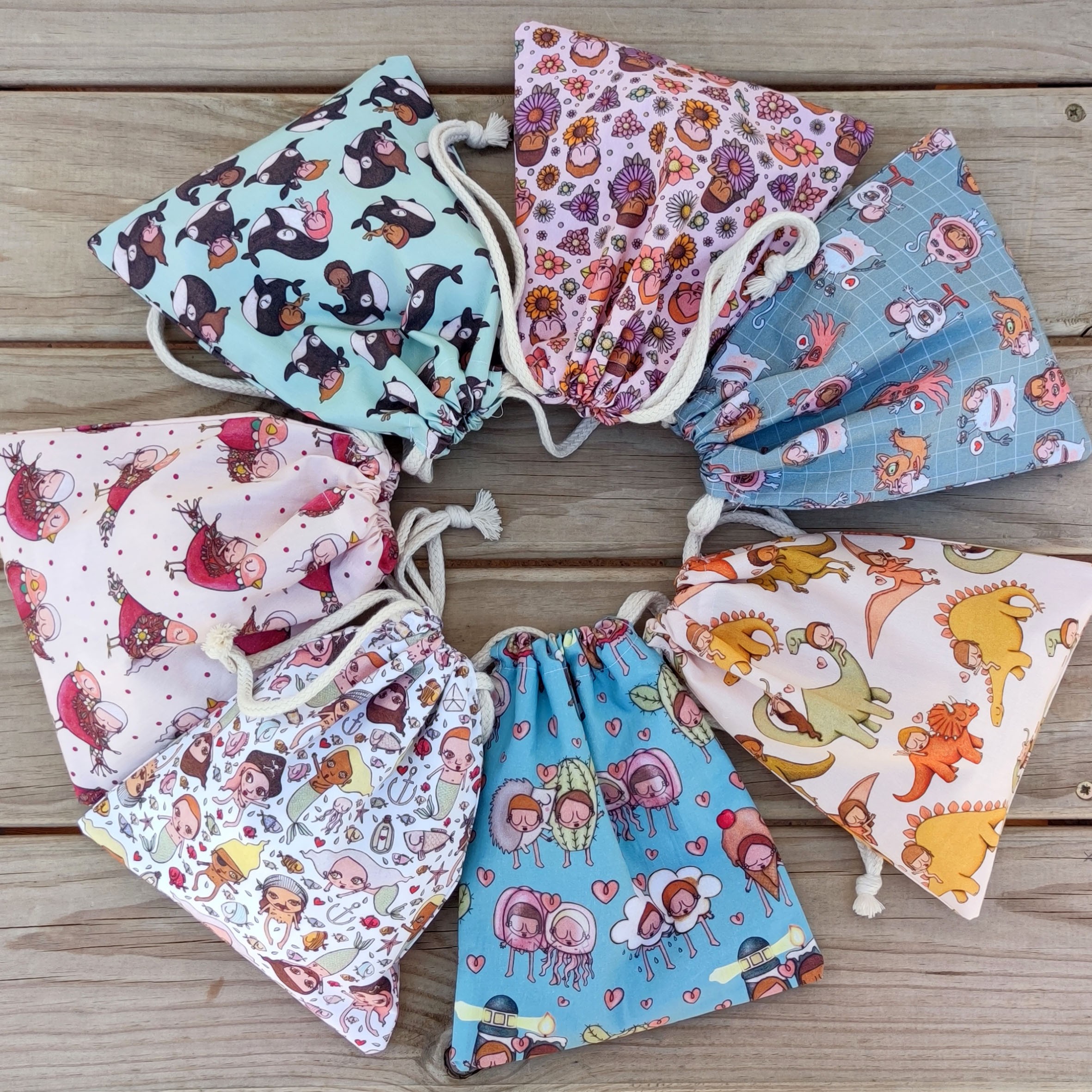 Bolsita de 20x20cm o 30cmx30cm elaborada con tejido de algodón orgánico por fuera y forro interior de fibra de látex ecológica, especial para envolver alimentos. Impermeable, biodegradable y que no desprende tóxicos.