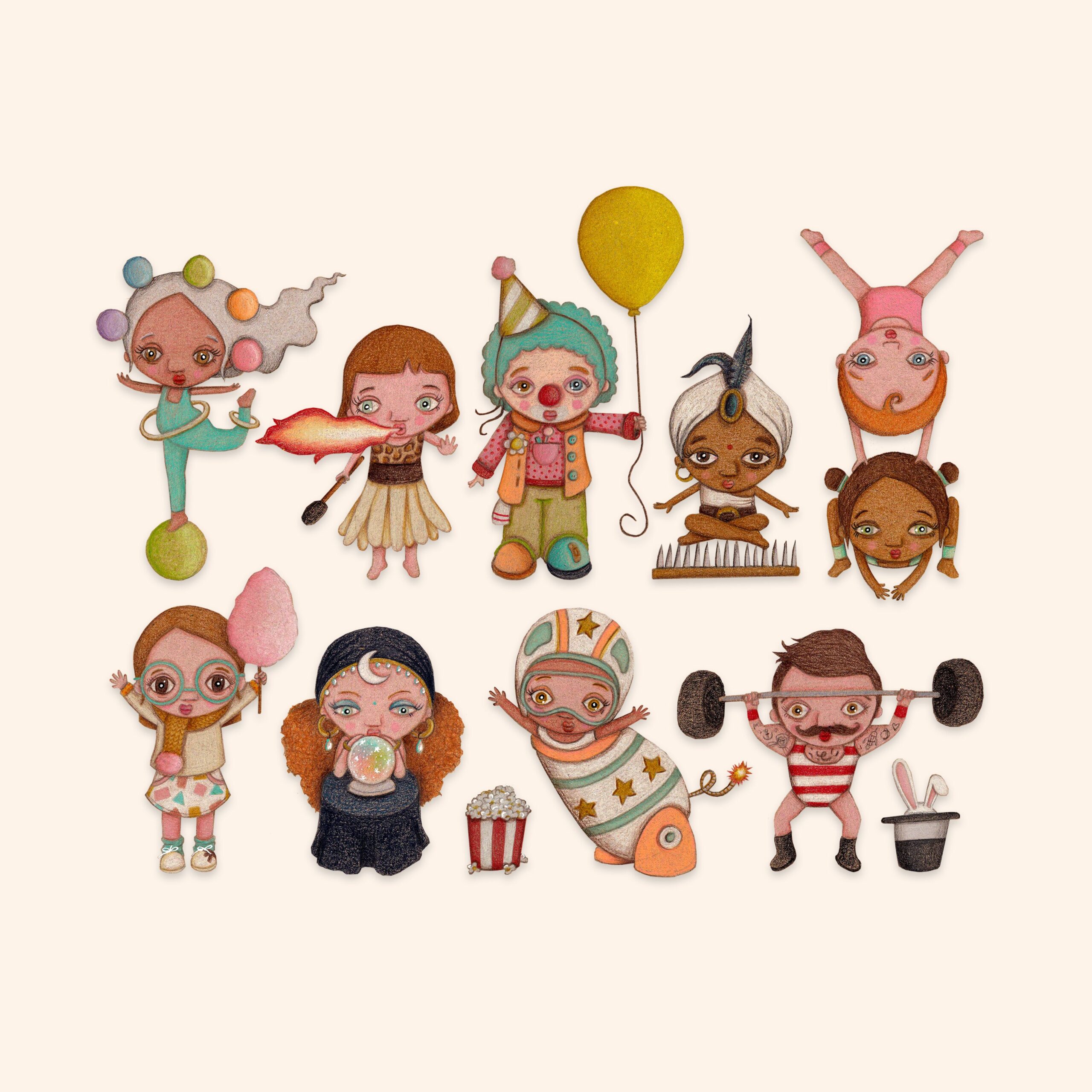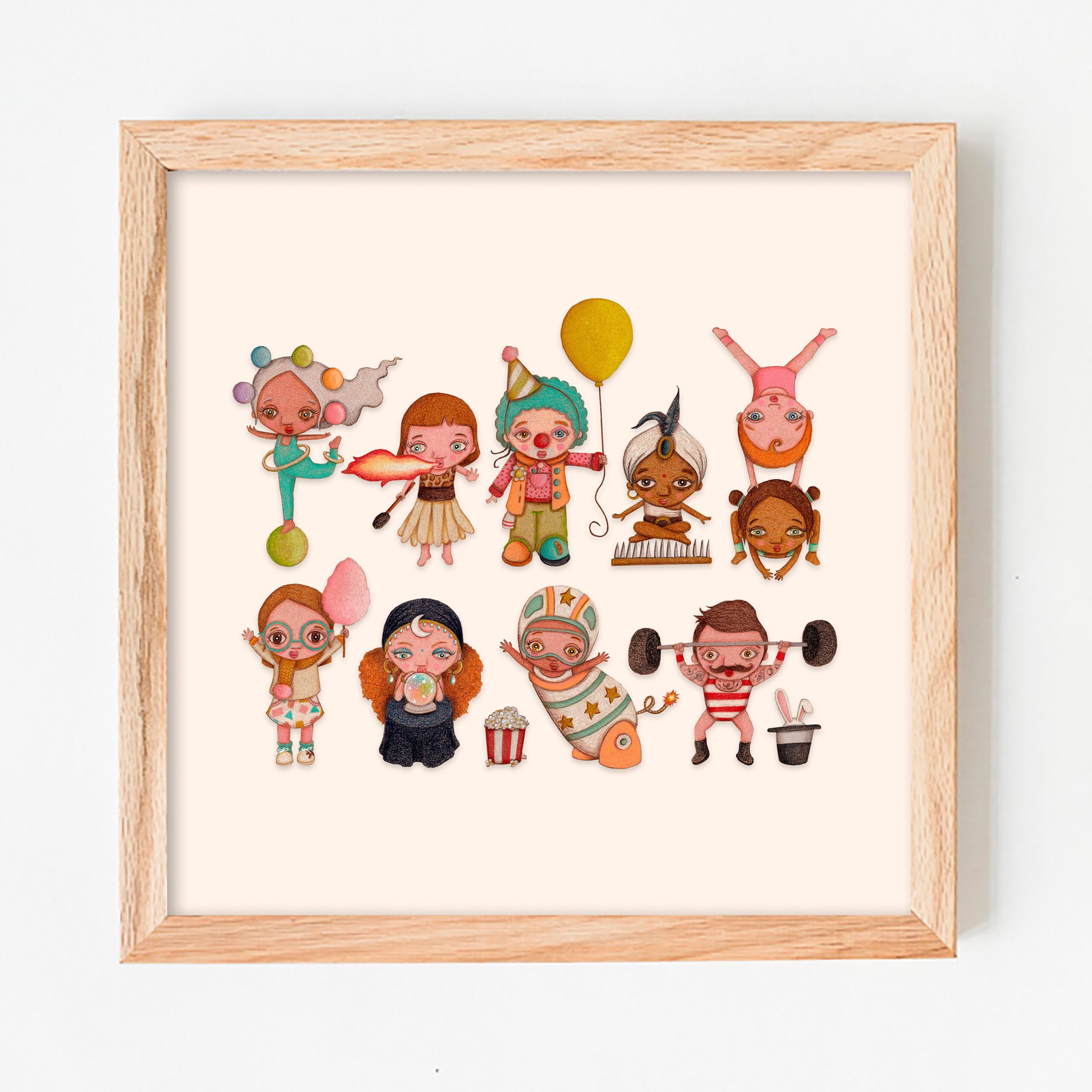 El dibujo está realizado previamente a mano con lápices de colores y digitalizado posteriormente para realizar la lámina.