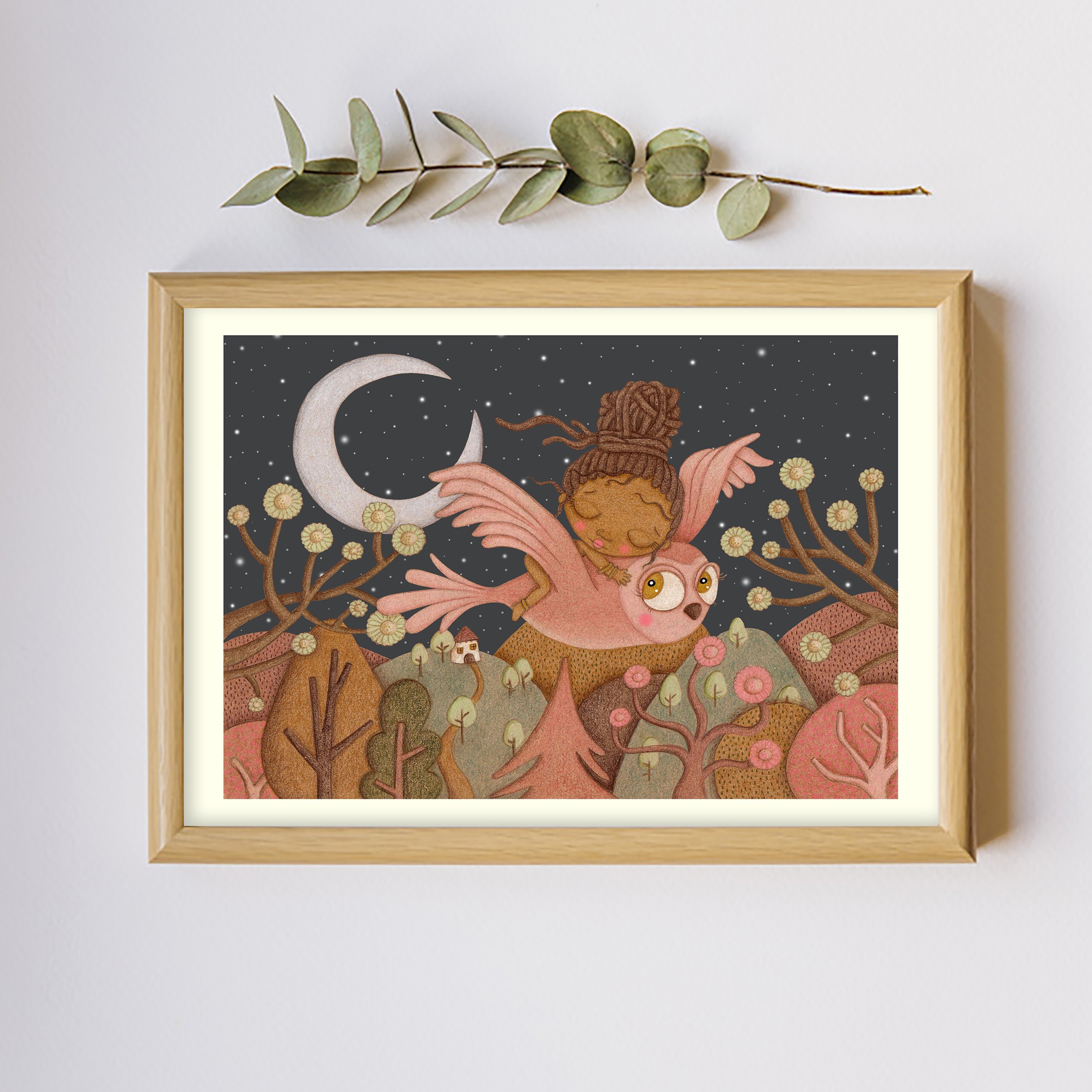 El dibujo está realizado previamente a mano con lápices de colores y digitalizado posteriormente para realizar la lámina.